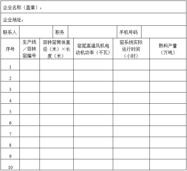 ? ? 4.“窯系統實際運行時間”為窯系統2017年全年的實際運行時間(多數企業統計為窯投料時間);“熟料產量”為窯系統2017年全年的實際產量。