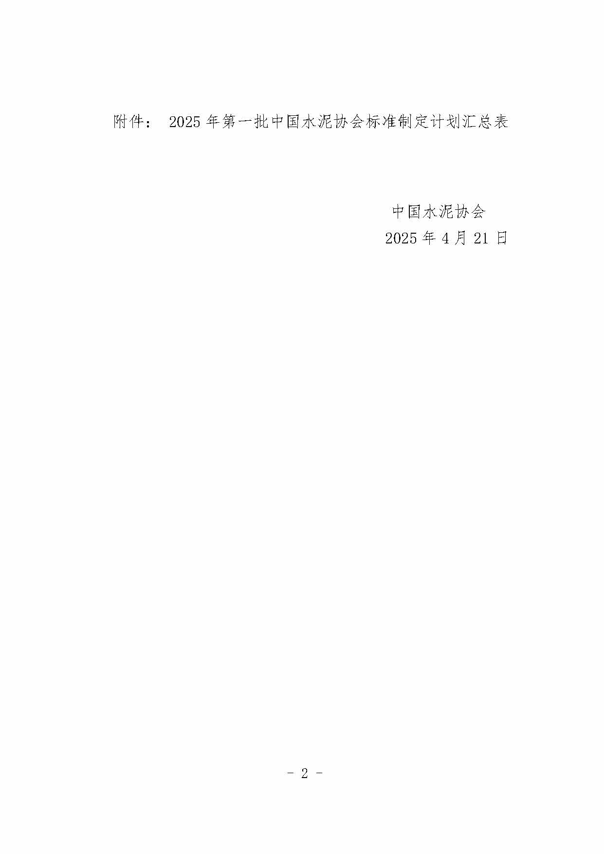 關于下達2025年第一批中國水泥協會團體標準制定計劃的通知