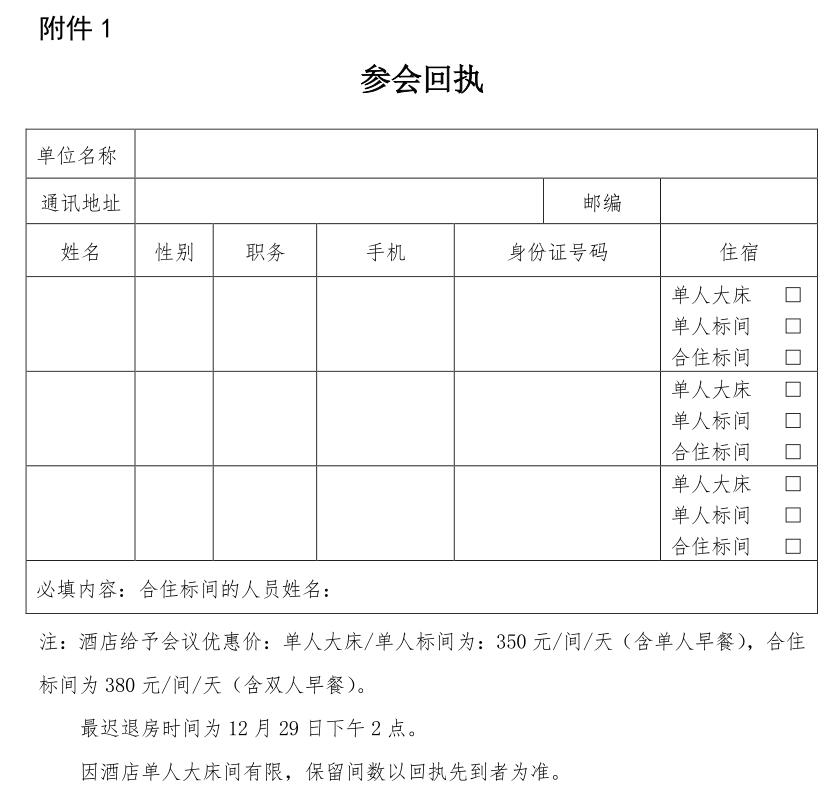 1.參會(huì)代表務(wù)必請(qǐng)于2021年12月22日前匯款,并將“參會(huì)回執(zhí)”以電子郵件或微信形式發(fā)送給會(huì)務(wù)組。